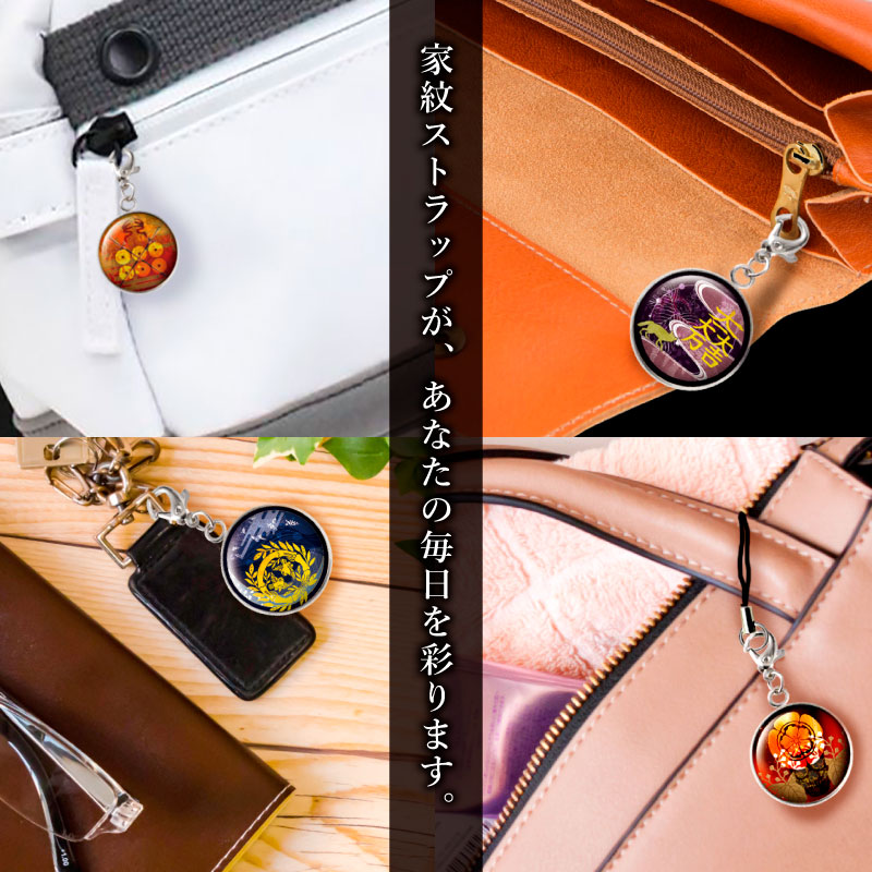 【当店オリジナル】戦国家紋メタルドームストラップ(チャームフック付)【や・ら・わ行】