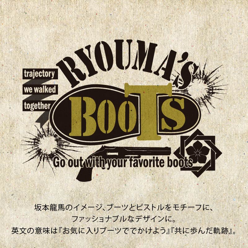 坂本龍馬のイメージ、ブーツとピストルをモチーフに、